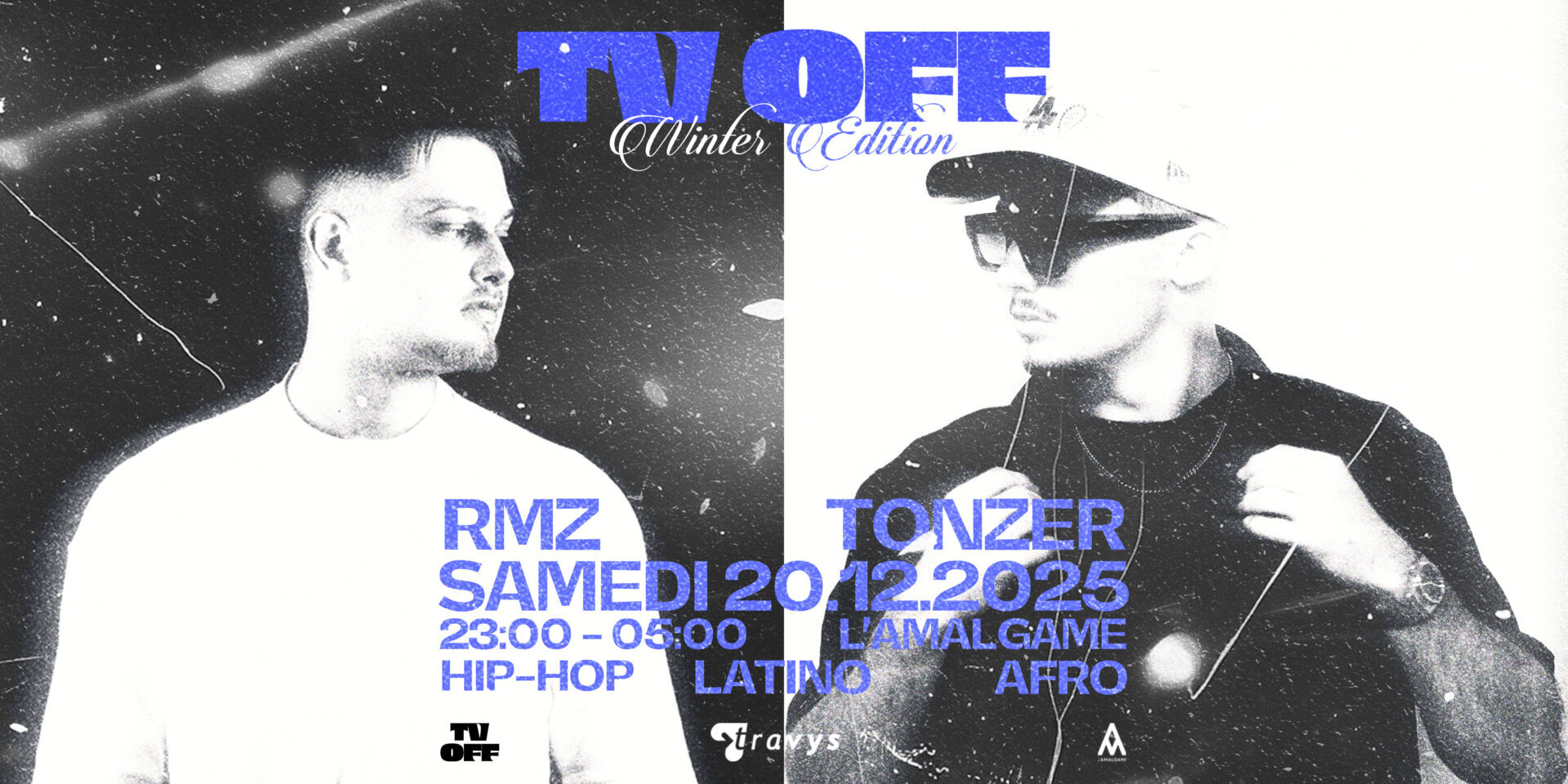Après deux premières éditions de folie, RMZ et Tonzer reviennent foutre le feu à L’Amalgame, à l’occasion de la TV OFF volume III, placée sous le signe du solstice de l’hiver ! 🔥